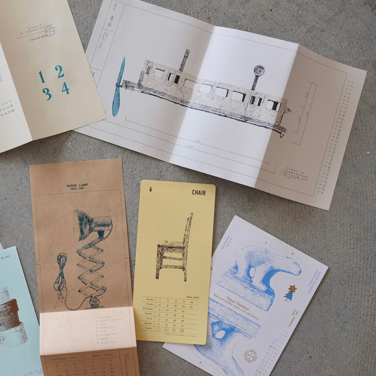 2026年は古道具店k-toolsの味わい深くユーモラスな品々を描いたカレンダー。